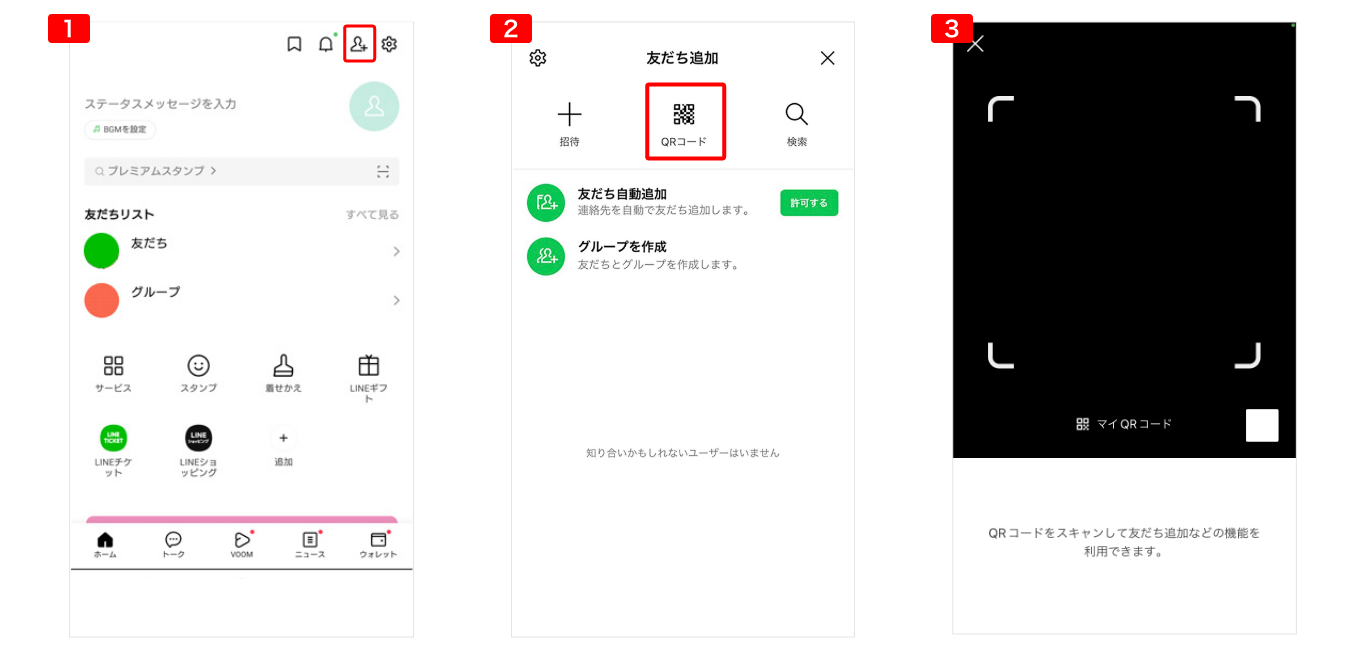 一部の機種では、デフォルトのカメラではQRコードが読み取れない場合があります。その際は、LINEアプリのカメラ機能を使用して読み取っていただくようお願いいたします。