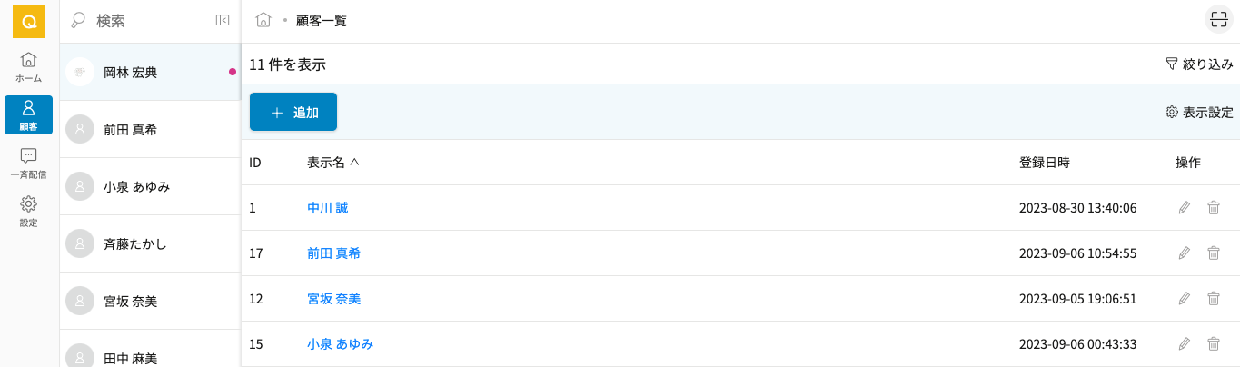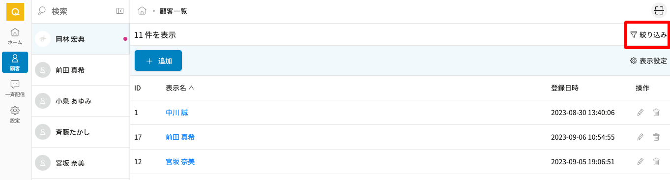 会員登録された顧客の一覧表示及び絞り込み検索を行うことができます。