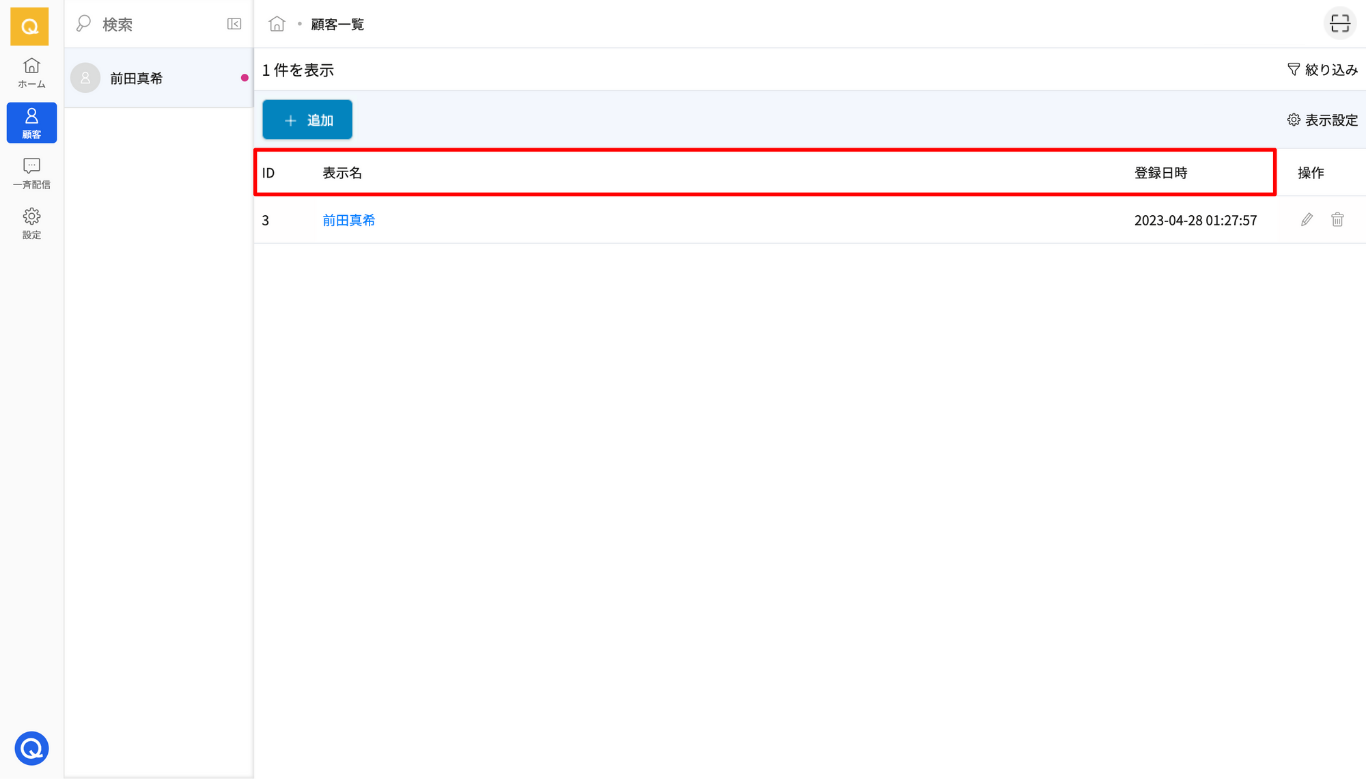 ユーザーがLINEで登録している表示名があだ名や絵文字など、顧客判断がしずらい場合に、管理者側で顧客名を設定できます。また、顧客一覧に姓名や電話番号、誕生日などを表示することもできます。
