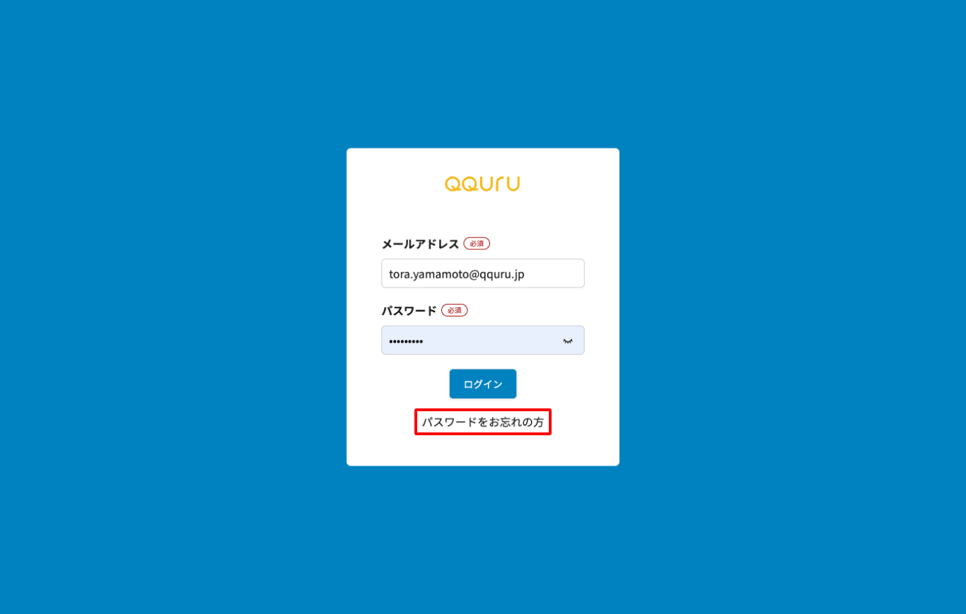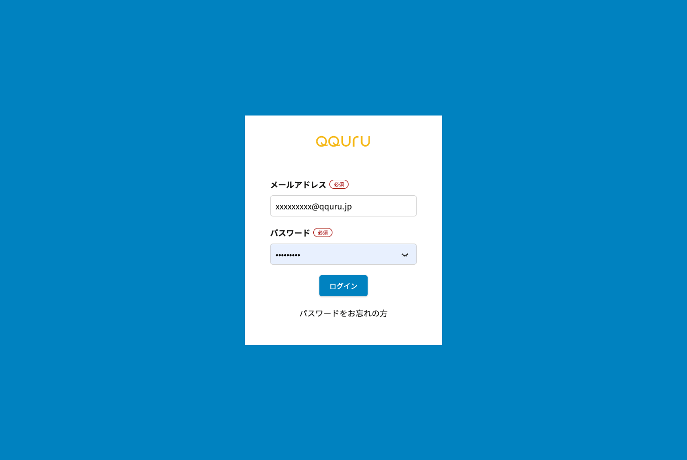 なお、ログイン用のメールアドレスを忘れた方は、自社のQQURU契約管理者にご確認ください。