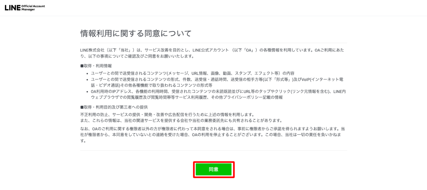 - 4. 情報利用に関する同意についてを確認の上「同意」を押下