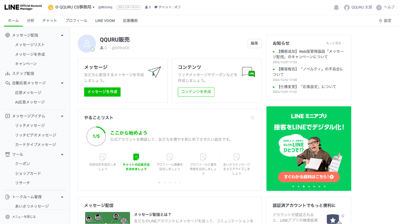 - 以上の作業でLINE公式アカウントの発行が完了しました。