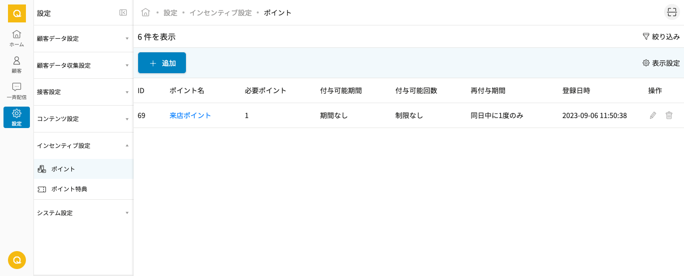 新しいポイントを作成する場合は帳票上部の「追加」を押下してください。